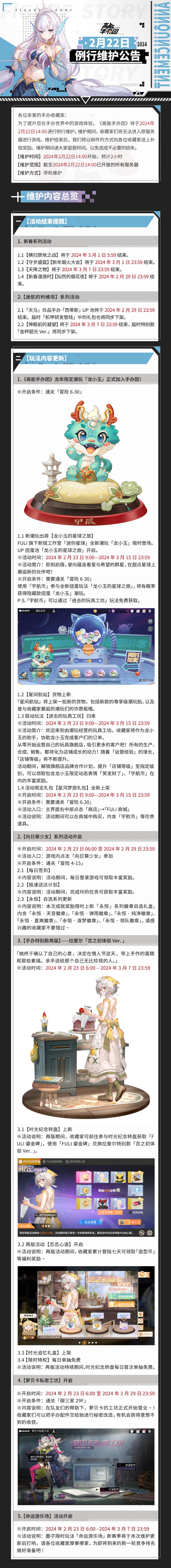 《高能手办团》2024年2月22日例行维护公告