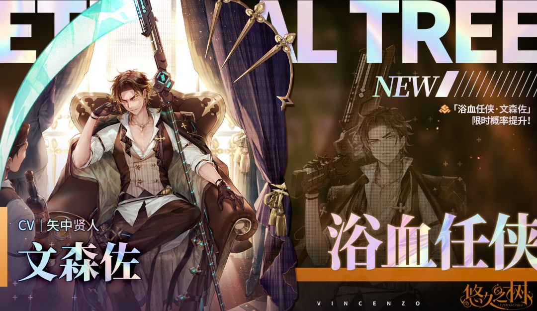 「浴血任侠·文森佐」限时UP许愿池即将上线。全新地属性SSR稀有度角色「浴血任侠·文森佐」可在本许愿池邂逅获得,且邂逅概率限时提升!