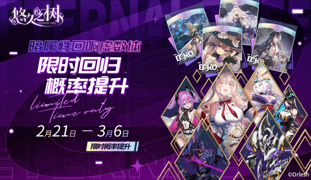 暗属性回响虚数体限时概率提升,2月21日维护后,全系列暗属性回响限时回归!且暗属性回响、暗属性虚数体在本许愿池内邂逅概率大幅提升!