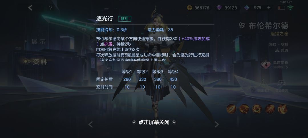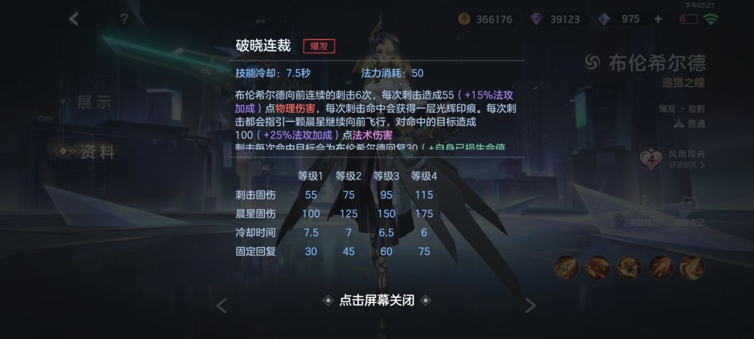 每次一技能或三技能的释放后的晨星有五颗命中了野怪或者敌方英雄,会立刻为这个技能充能一次,并且可以突破一次存储上限,但是不能再次突破。