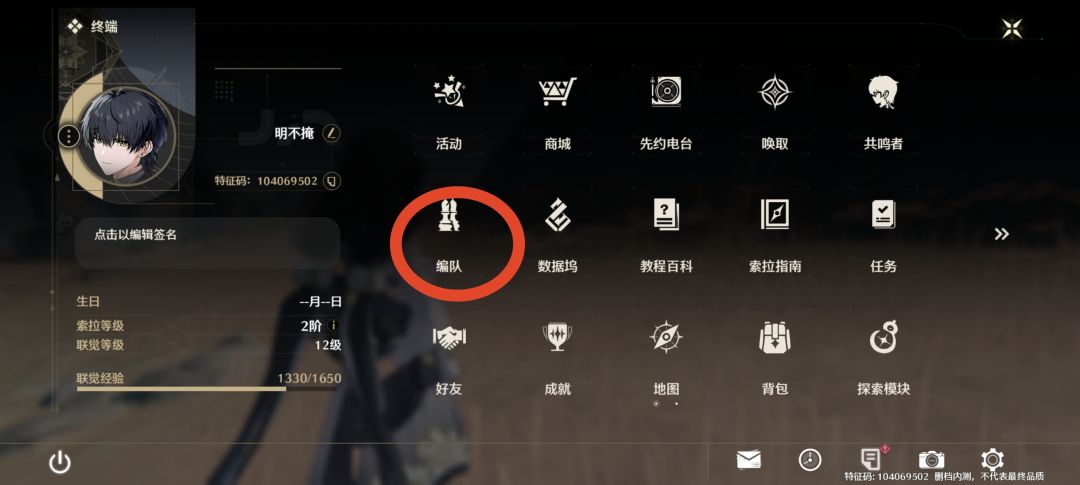 可通过“编队”变更出战共鸣者