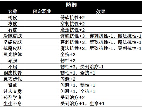 分类说明白了,接下来请看我列的表格,里面是所有特质与分类!