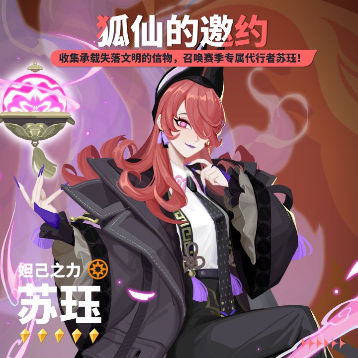 ◇ 本期神鸣异现主题为【觅迹寻踪】,将分4个阶段展开,本版本开启第1阶段。神鸣异现包含古迹探秘、狐仙的邀约、摘星楼、旧闻拾遗、科技实验室等玩法模块。通过参加玩法,将可获取玩法限定代行者苏珏(妲己)、闪耀唱片和养成素材等丰厚奖励。