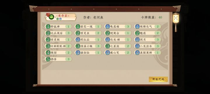 第一套驺吾,清溪小妹和比丘美后为核心的卡组。这里选的是一套水木变种,提速卡组增加略微的反制。也可以组一套花果木的纯木套。反正都是当快攻打,胡了就拿分,不胡下一把。