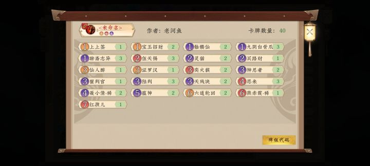 第二套是恶来为核心的卡组,恶来配合聊斋志异拿资源,还可以配合陆判请场,略有意思。其他细节留给大家继续打磨。