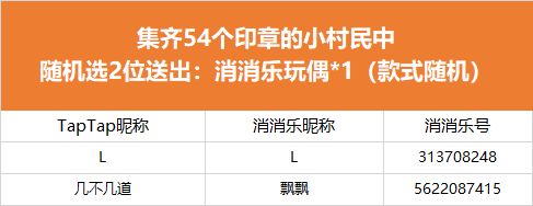 ■集齐54个印章的小村民中,随机选2位送出:消消乐玩偶*1(款式随机)