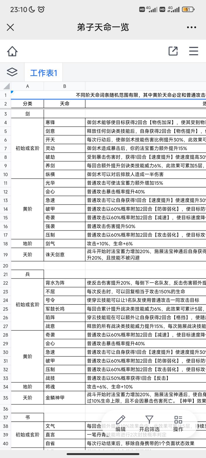 统计了部分弟子天命、天赋及怪癖效果,个人能力有限,还有部分未统计到,缺漏效果欢迎各位截图回复,十分感谢。
