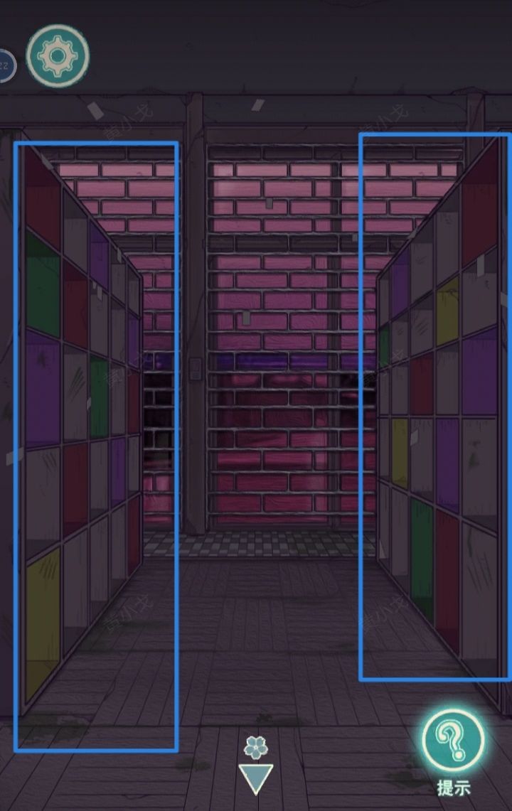 8.点击柜子上的密码锁,根据上面的提示(颜色:紫红绿黄),结合楼道出口鞋柜的颜色及数量(红色:8、紫色:7、绿色:4、黄色:3),输入密码:7843