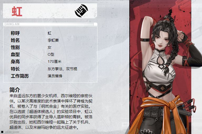 第四位虹,这位角色大家就相当熟悉了,富养虹的目的就是为了提升其【崩山】与【升龙击】的斩杀血线,其次便是她在天赋叠起来后拿可谓之恐怖的闪避能力,而她的富养质变点也非常简单: