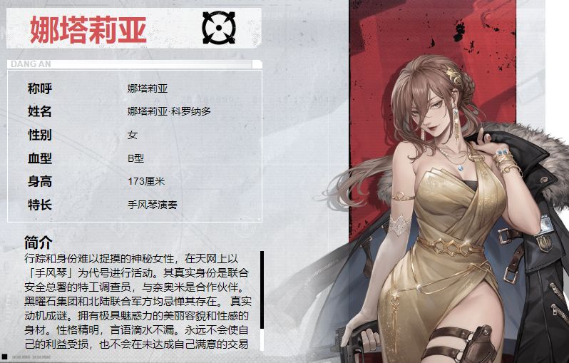 第二位娜塔,这妹子也不矮......173cm的大高个,咳咳,当然娜塔的富养质变点其实就相当简单明了了,那便是提升伤害和斩杀线,因为作为定点狙击手娜塔最大的看点就是单发伤害,而且还是狙头的伤害为主,毕竟按照她的技能消耗,类似于西尔维娅这般断手断脚的使用方式肯定也是不太持久的,所以富养娜塔的最终目标就是为了提升她的伤害。