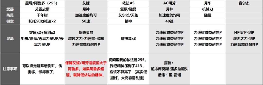 例:火输出手B+AC月华(防)+AC明芳+月华+刀灵晶光环+灵活位
