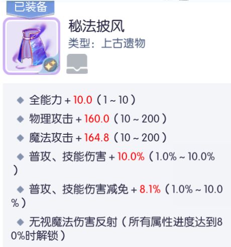 3、遗物:秘法披风,灵脉,锁血,真视那些