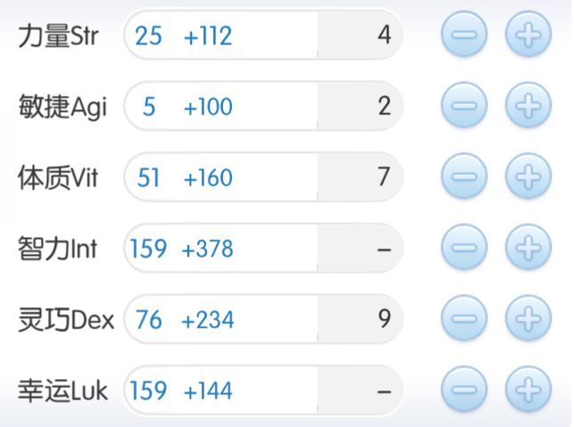 加完自身BUFF后的素质点