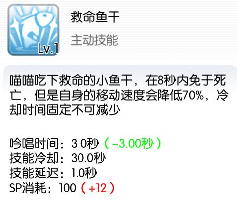 救命鱼干技能,可以让8秒内免死
