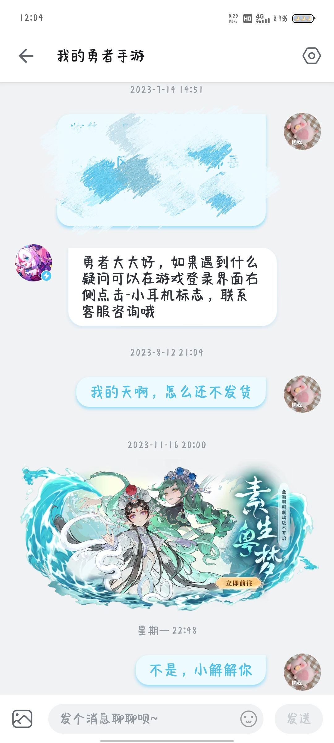 去年周年庆直播搞的抽奖,中了实体魂卡,中途我催过一次,没动静,到现在快一年了,还是没动静,虽然我没花钱,但是你也不能给我一个空头支票吧?