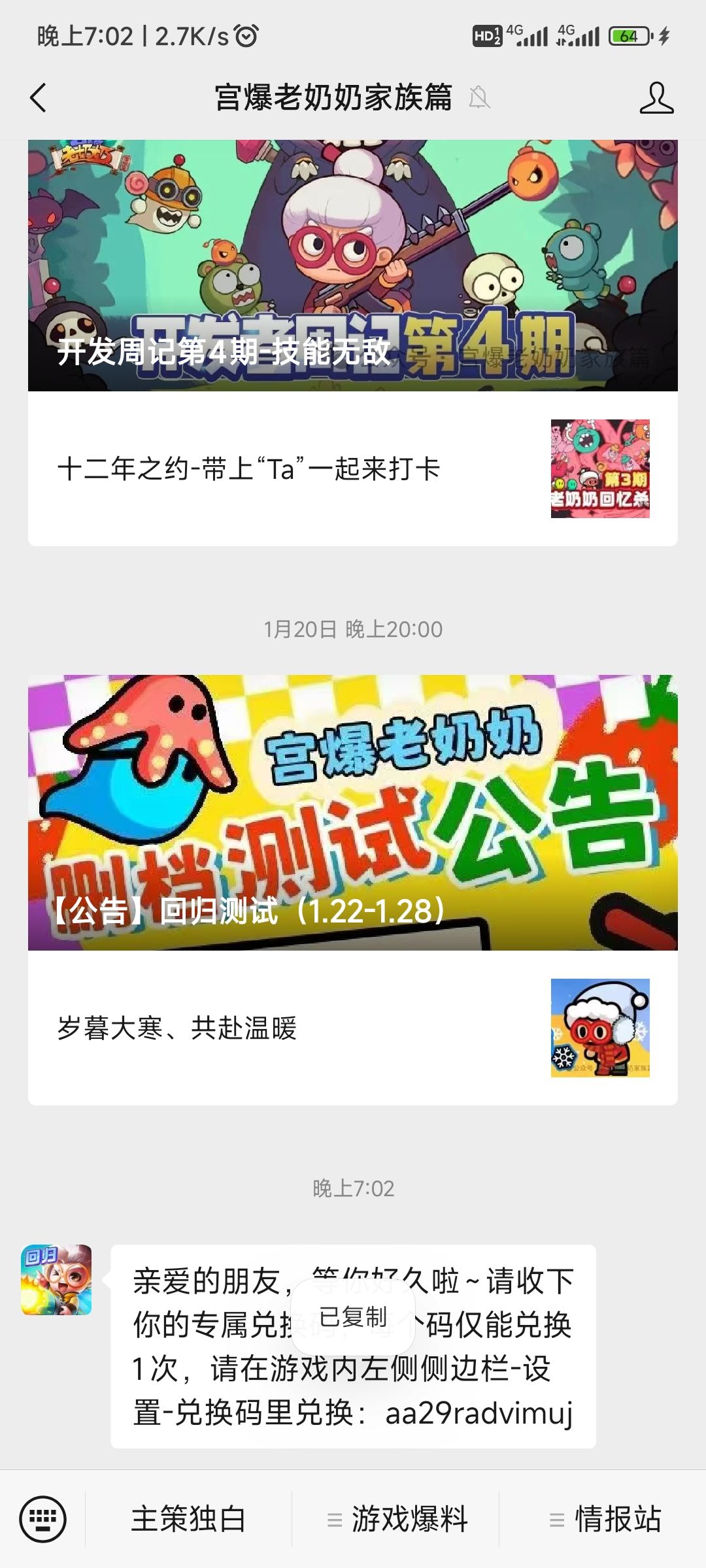宫爆老奶奶家族篇兑换码
