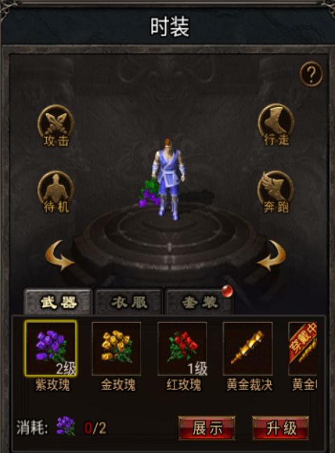 ◆在界面中你可以试穿游戏内的时装,通过箭头转动视角360度查看效果,让角色尝试攻击、待机、行走、奔跑不同动作