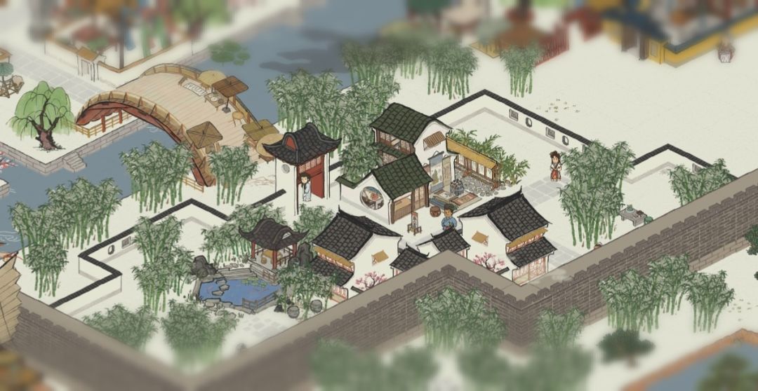后面实在不知道要放什么了,就搞了一小片人工湖和一点红枫,在张择端门口放了小花园和金鱼池。