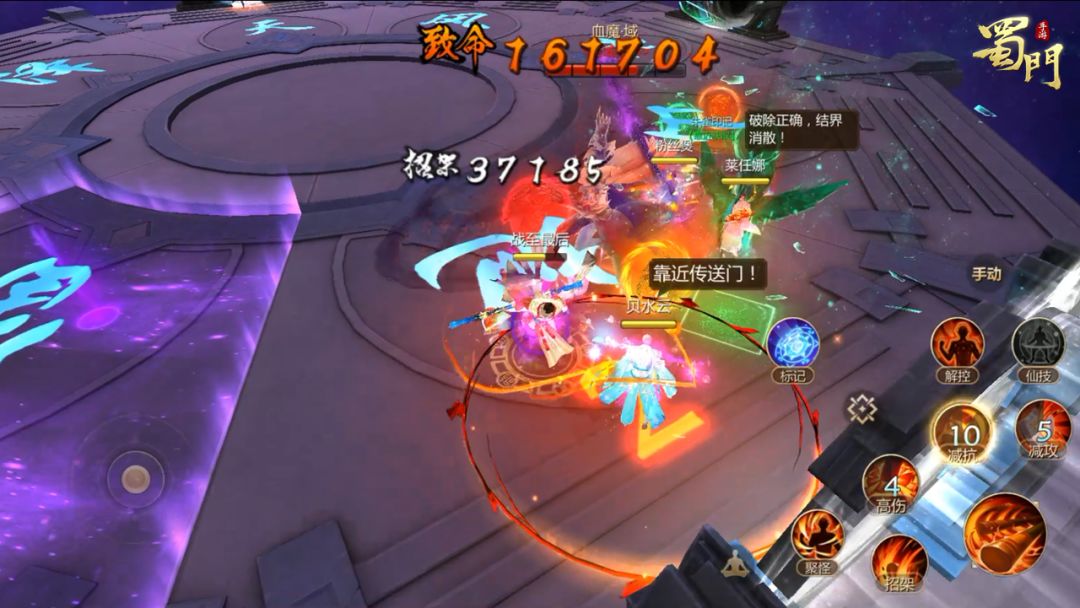 门边玩家按照武尊报的颜色顺序依次点击驱散传送门上的结界进行驱散。每驱散成功之后,再进行下一个颜色的驱散,如果驱散顺序错误会将玩家用结界禁锢。