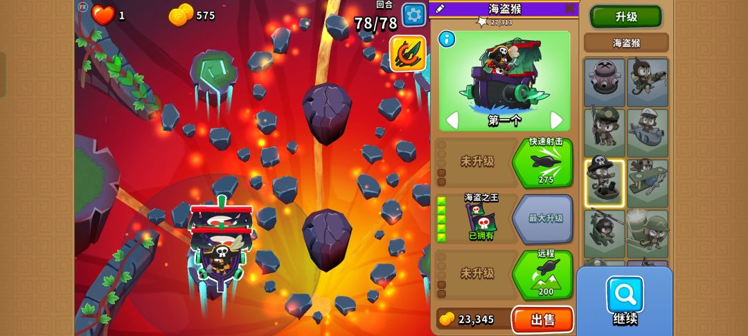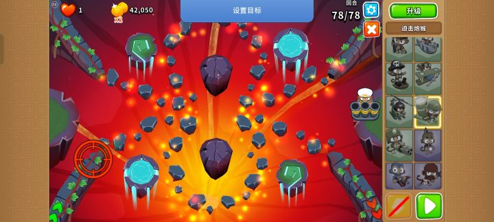 1 一开局下050迫击炮,调整目标到下侧,一直按技能,只剩BFB以后卖迫击炮放040海盗猴,放技能。