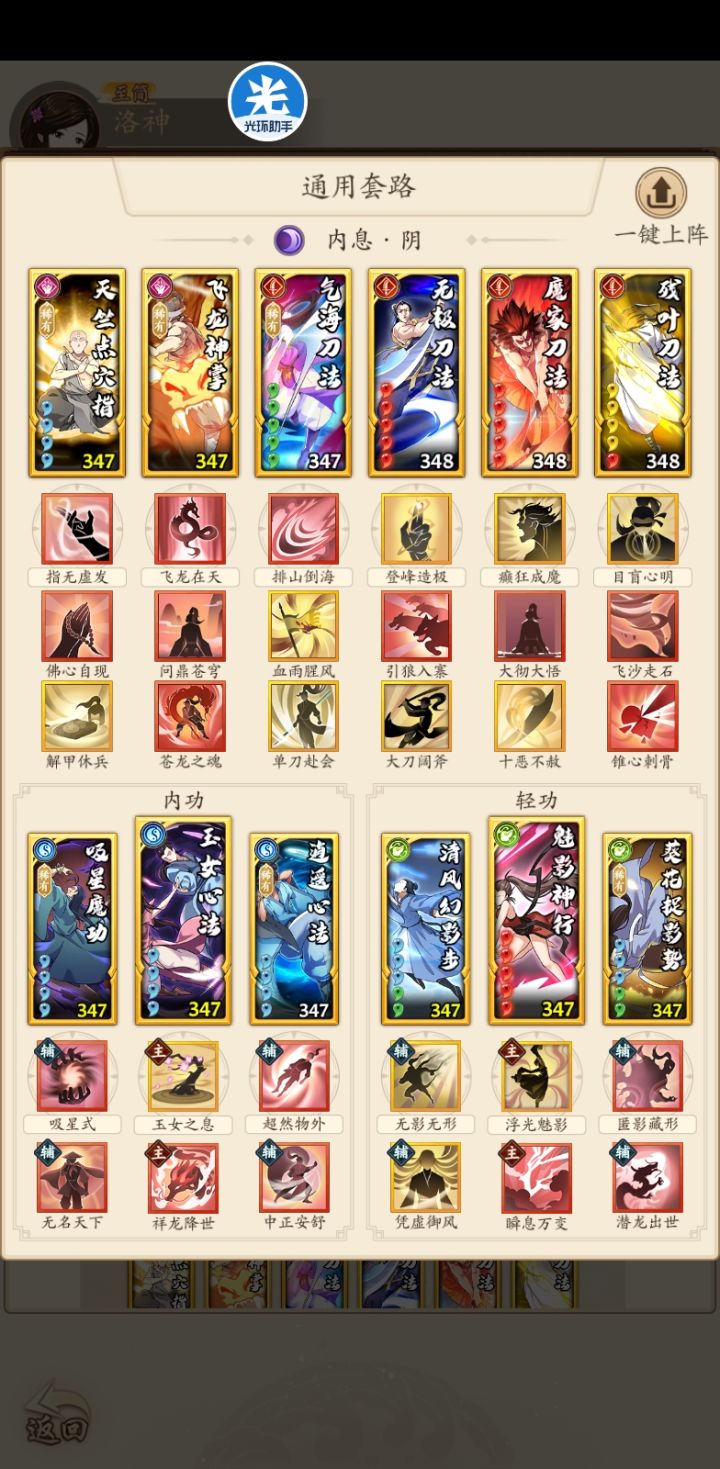 有万马后,刀连击高了一点。祥龙用来爬塔那是神器,必须上。这个现在可以爬到1360层。调和息和尚用阴内息套路打,阳息和阴息用阳内息套路打。