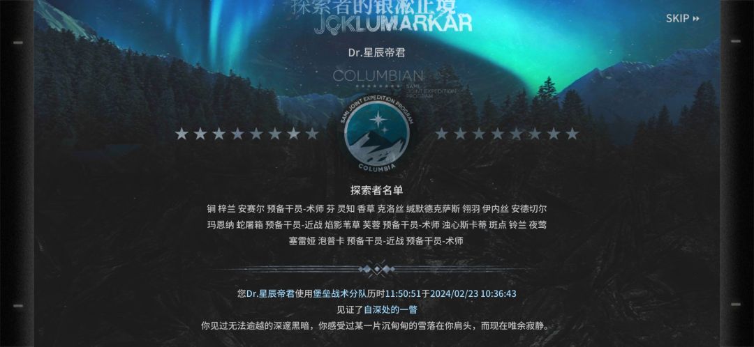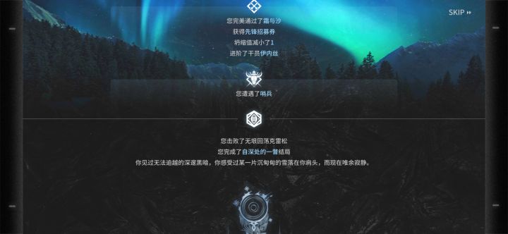 从2月初开始肝萨米肉鸽12角标,角的生息演算调查问卷下发的时候还没时间碰,到现在也还没开始生息演算之旅,准备角标肝完再开始玩。从4结局开始肝,目前进度是4结局全12角标,3结局进度已过半。目前的体会是更新完以后真TM的考验心态。五层深寒造像简直比那两个六层boss还难(我队伍肯定奔6层boss打造的,这个道中boss就很恶心人)。然后3结局打了好几个角标,队伍也差不多知道该怎么配了,然后一不注意就被哨兵给初见杀了(常规摆位靠左,初见时习惯摆左,结果摆了个寂寞)。刚才终于近卫分队胡局把哨兵虐了,休息下发个帖子。等我全角标来上图,开局都是借的好友的锏,别问我为啥没有,我哪知道他肉鸽好用,抽都没抽。以前都是被各种超大杯搞得都快没抽了,现在除了限定和好用的基本都是等歪,我已经后悔没抽锏了,不过好友助战位有,借就完事了。未完待续……![[嗒啦啦2_累]](https://img.tapimg.com/market/images/7bc63f2ddd8fef972ec60e42311e1cac.gif)