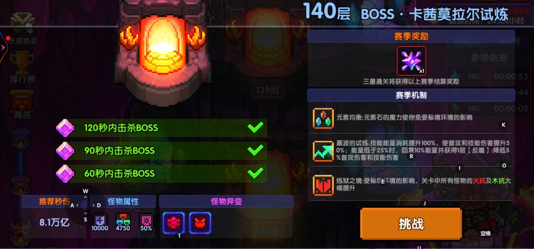 4.嘉波的试炼:能量消耗增加100% 获得50%的技伤和普伤 低于25%能量时 获得反噬 每层降低5%普伤和技伤