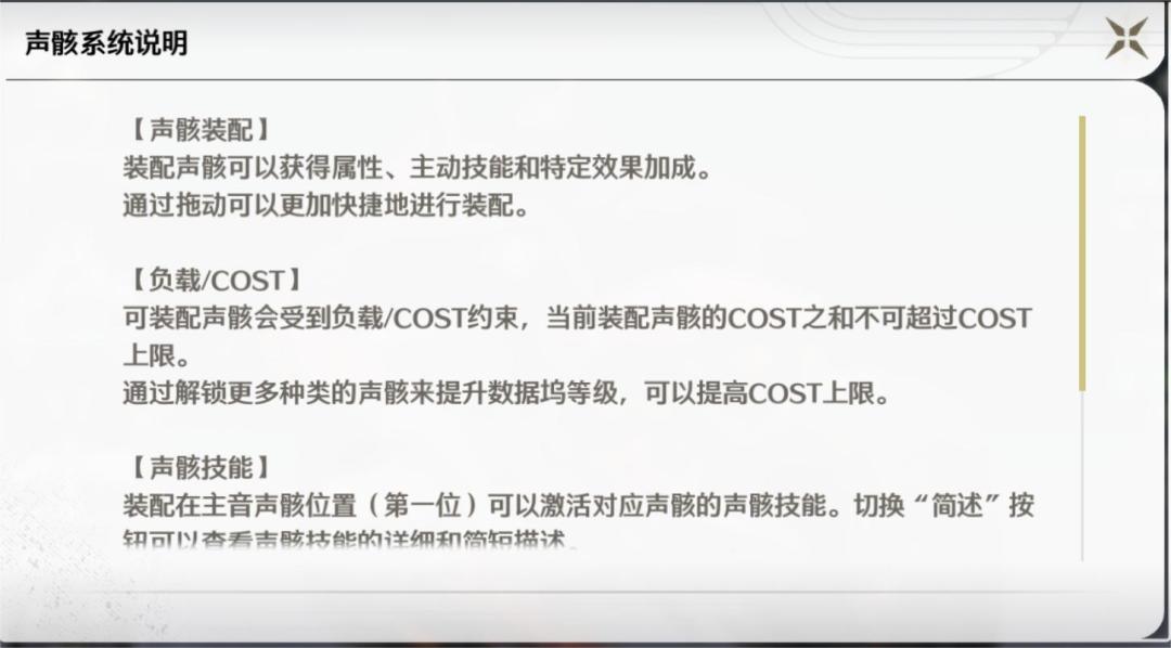 COST值是声骸装配的上限数值,提升数据坞等级,可以提高COST上限,目前这个上限为12。玩家可以至高装配5个声骸,常见搭配可以是44111或者43311等组合。