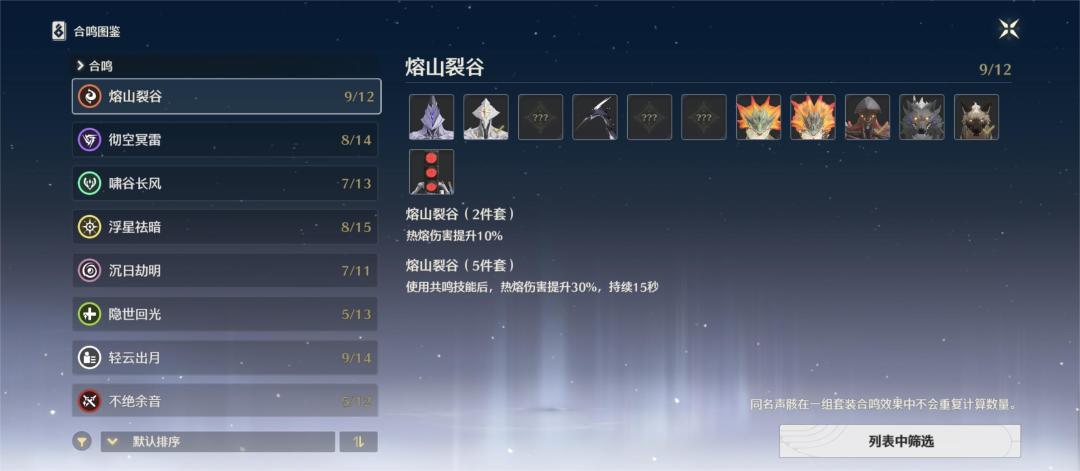 比如熔山裂谷,有12种声骸都可能支持这种合鸣效果。