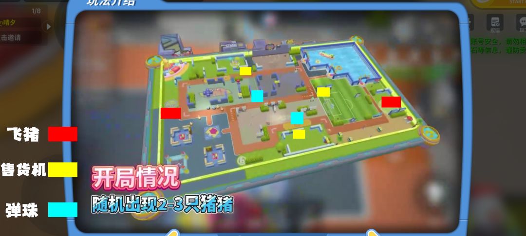 开局会随机刷新三只猪/两只猪,当刷新两只猪时,逃生会有空投补给,金币箱子和蓝色补给(一般为载具),反之,追捕会有空投补给(刷新三只猪时);若开局为两只猪,则会进行刷新猪的倒计时(一分半),场上有三只猪时,不会进行刷新倒计时噢;当运送出的猪数量为2的倍数时,会有飞猪撒币和绿色区域的空投经济补给;哪一方率先运送5只猪就获胜,对局为8分钟,若平局则会有2分钟的加时赛,对局结束,哪一方运送的猪多可获胜,但是也有平局,双方都可以加分。