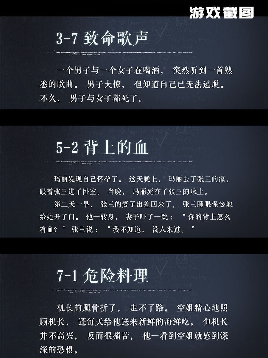 ✨故事以悬疑、犯罪、黑暗、欢乐组成,贴心准备了跳过恐怖故事的功能。