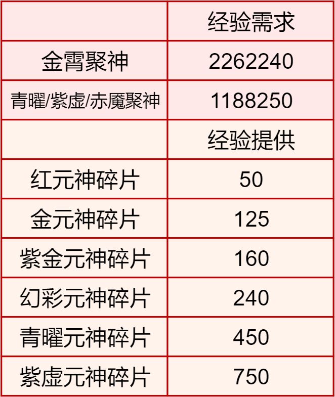 比如,原来聚神升70级的经验,用来升金霄聚神只够升60级,综合属性等于原来65级。