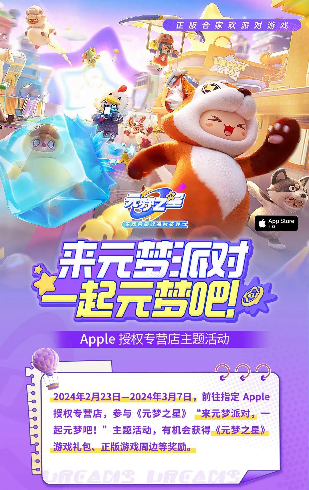 2024年2月23日至2024年3月7日,《元梦之星》× Apple 授权专营店联动开启。