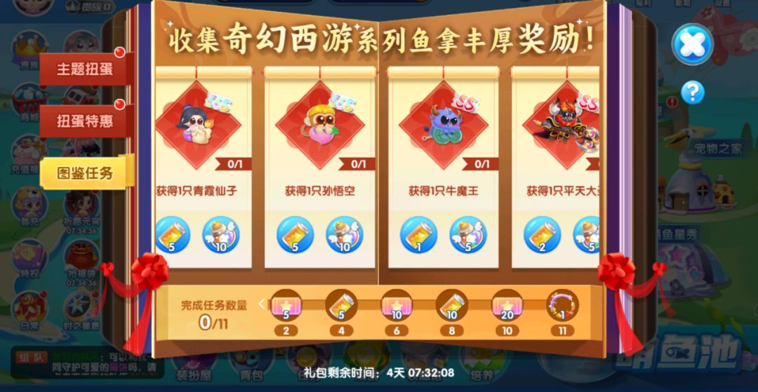 活动期间可在扭蛋机-奇幻西游中限时获得“孙悟空”和“青霞仙子”及配套系列鱼鱼~