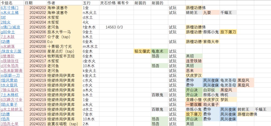 2.从20240201到20240222,所有在tap上上传过的通天塔卡组名单(链接)如下:(从最新开始)