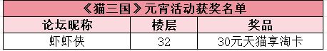 活动结束后,我们将在评论区随机抽选出1名幸运主公,送出30元天猫超市卡一张!