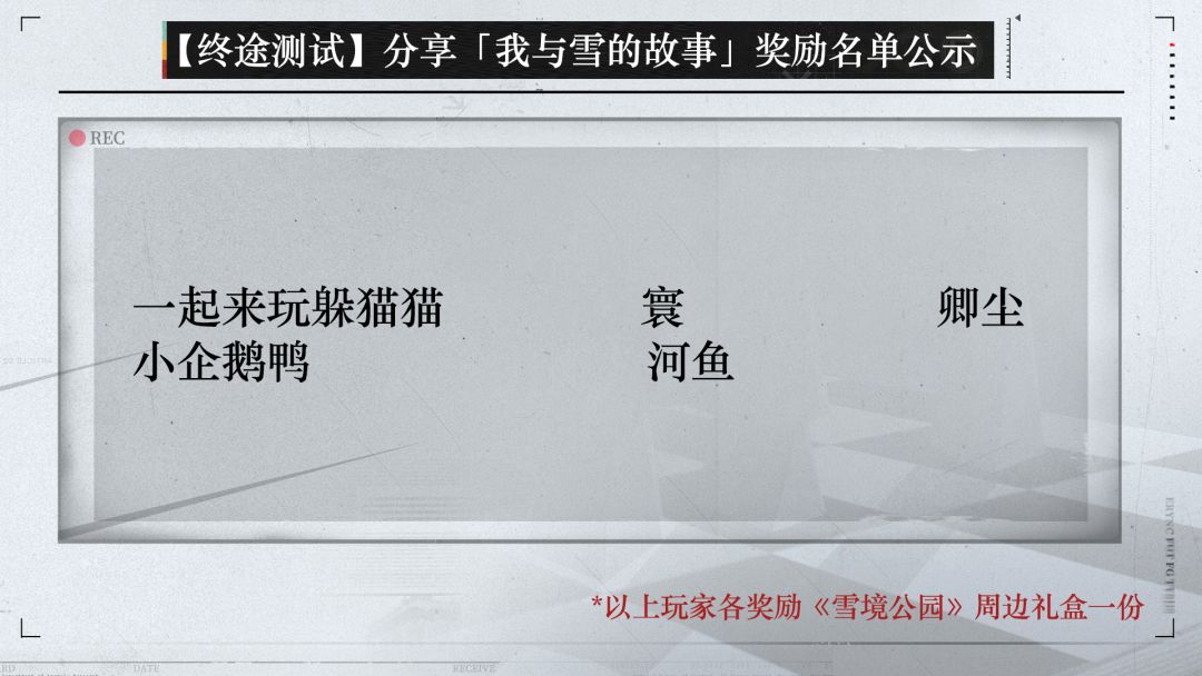 【雪境公园】【终途测试】分享「我与雪的故事」获奖名单公示