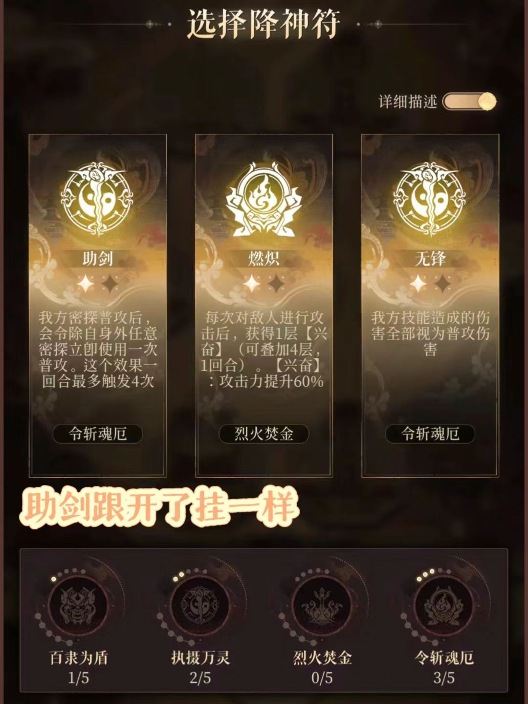 ✅优先选择战斗,降神符和羁绊有非常大的战斗加成