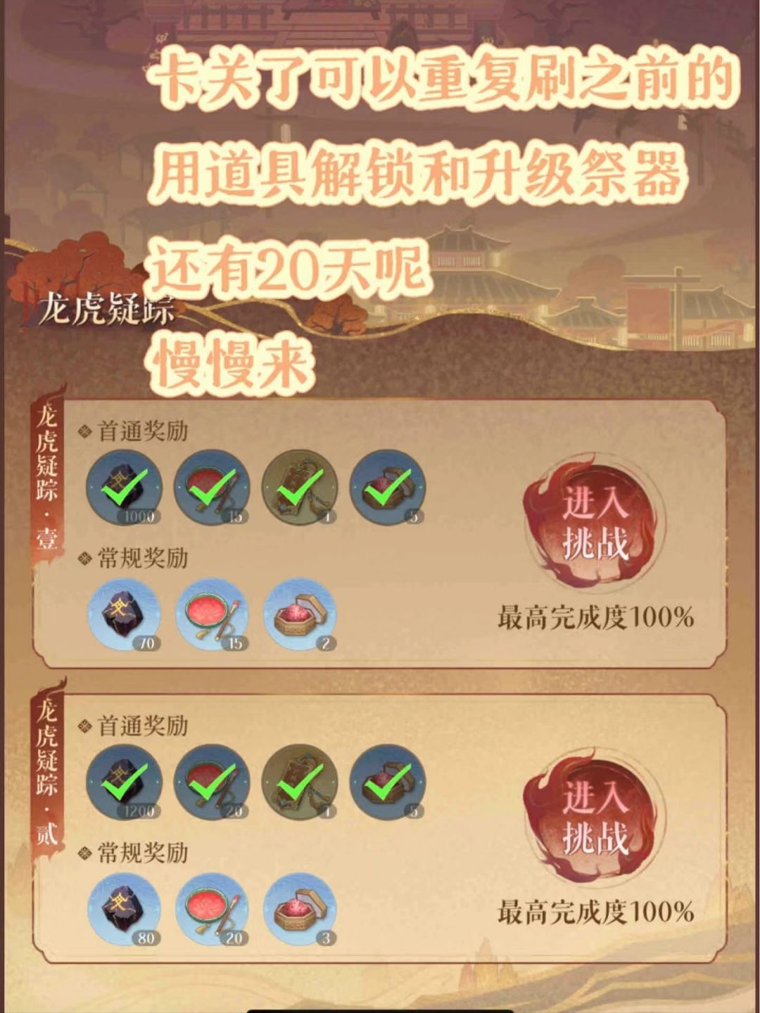 ✅卡关了,多刷前面的副本,拿道具升级祭器