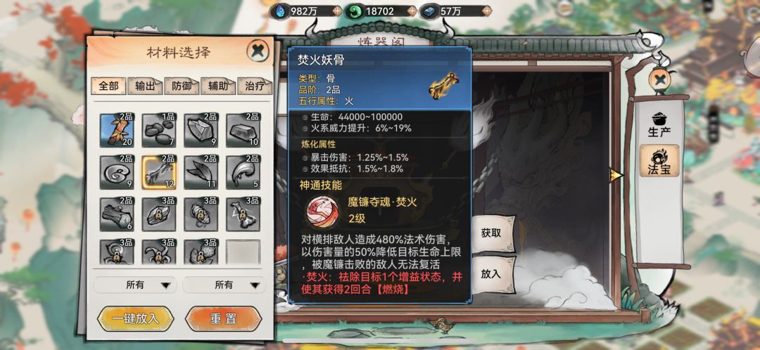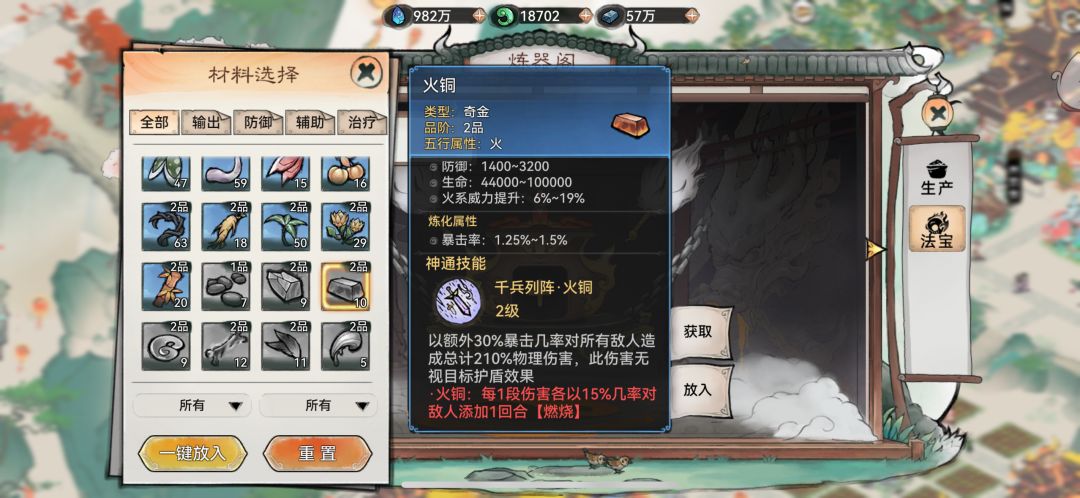 ①c位推荐这两个法宝,首选铜块,火骨次之。