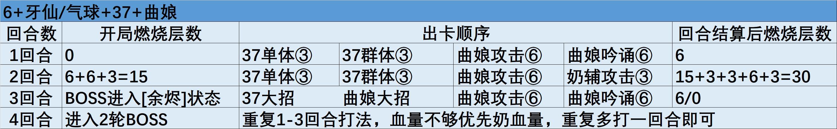 ①有曲娘且有37,可以:6+气球/牙仙+额外攻击角色+曲娘 打法如下:具体出卡顺序参考图2