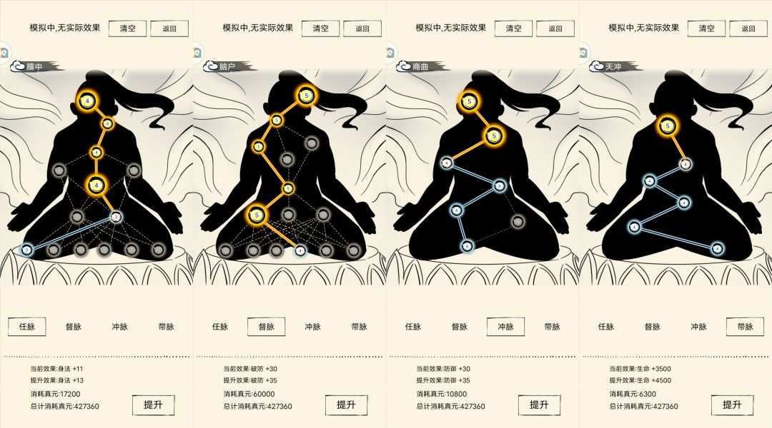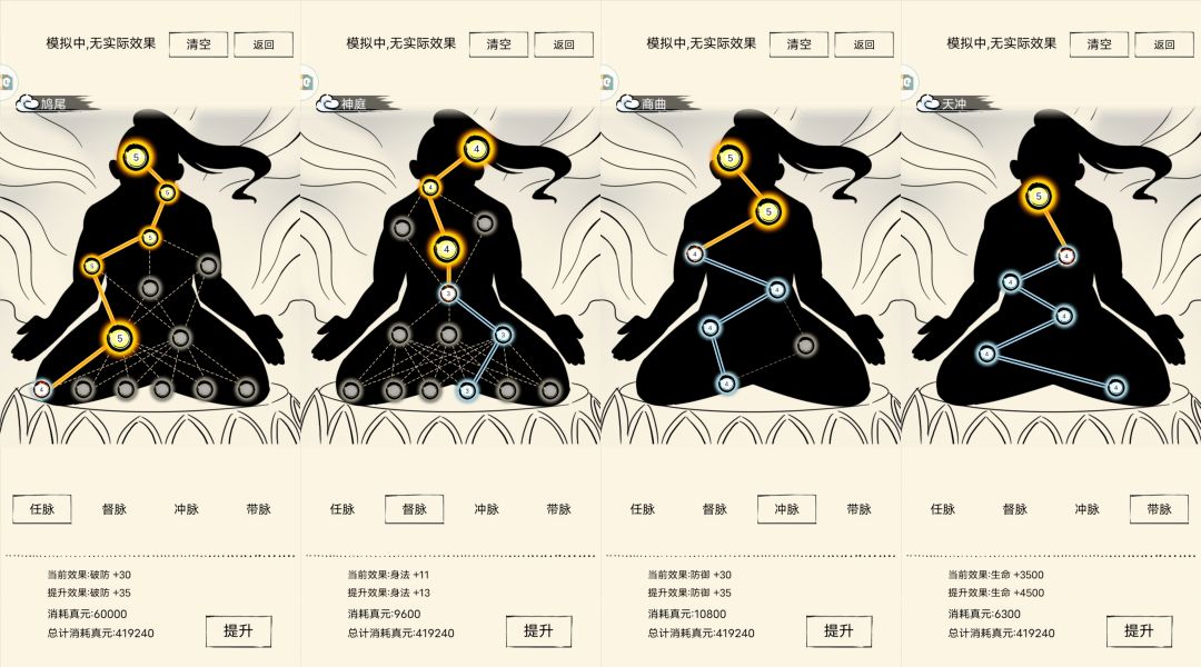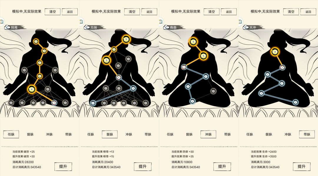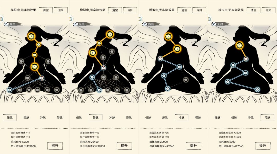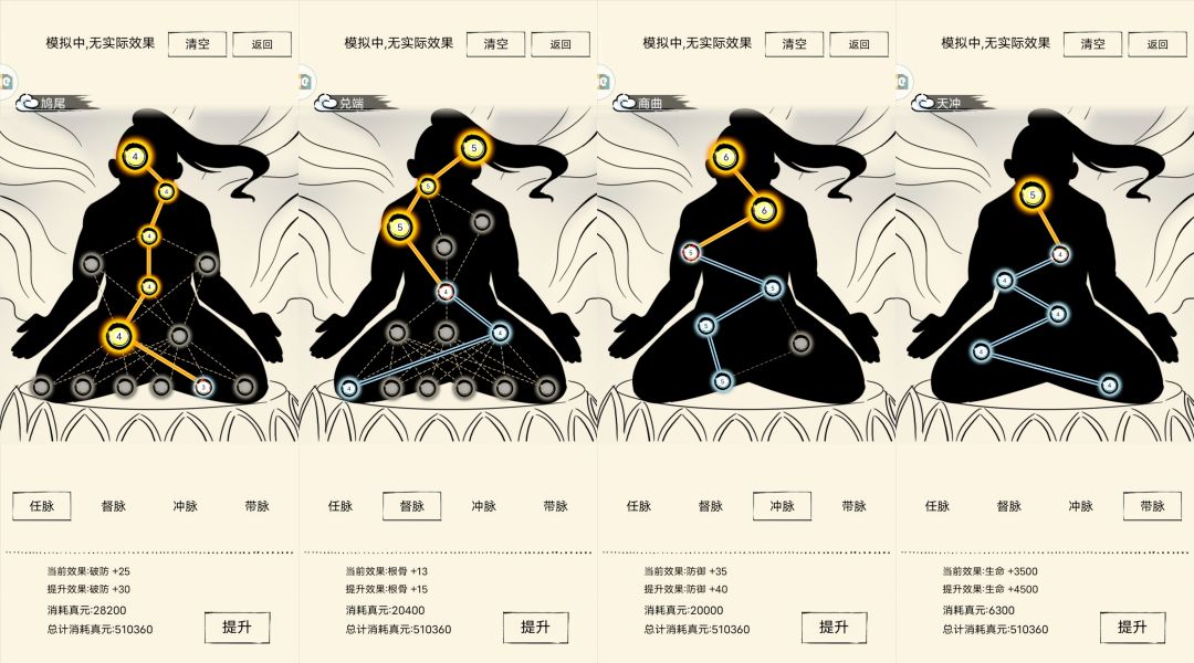 ☆注:四万真元是十分极限的快速轮回,你若是如此选择,那必定、必须是以快速发育为首要目标,你必须放弃一轮期间大部分的游戏体验,因此,带脉必须二级点满。