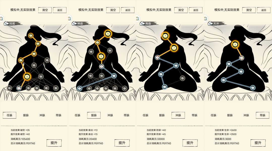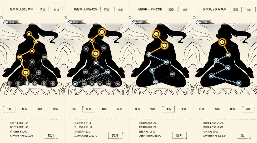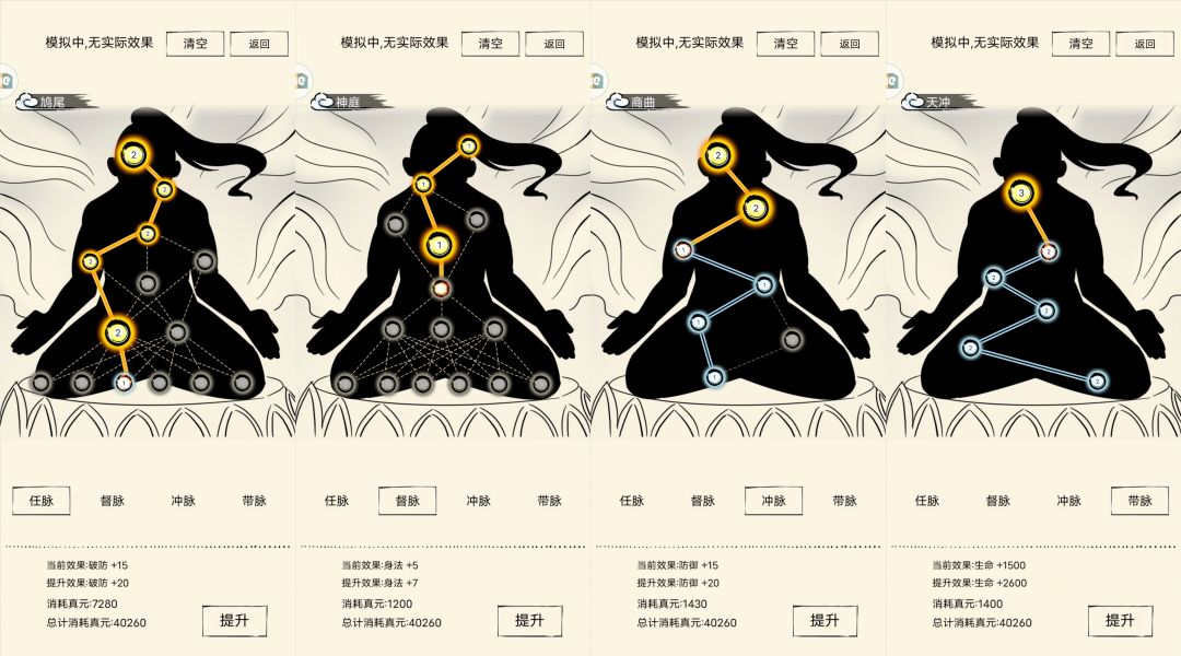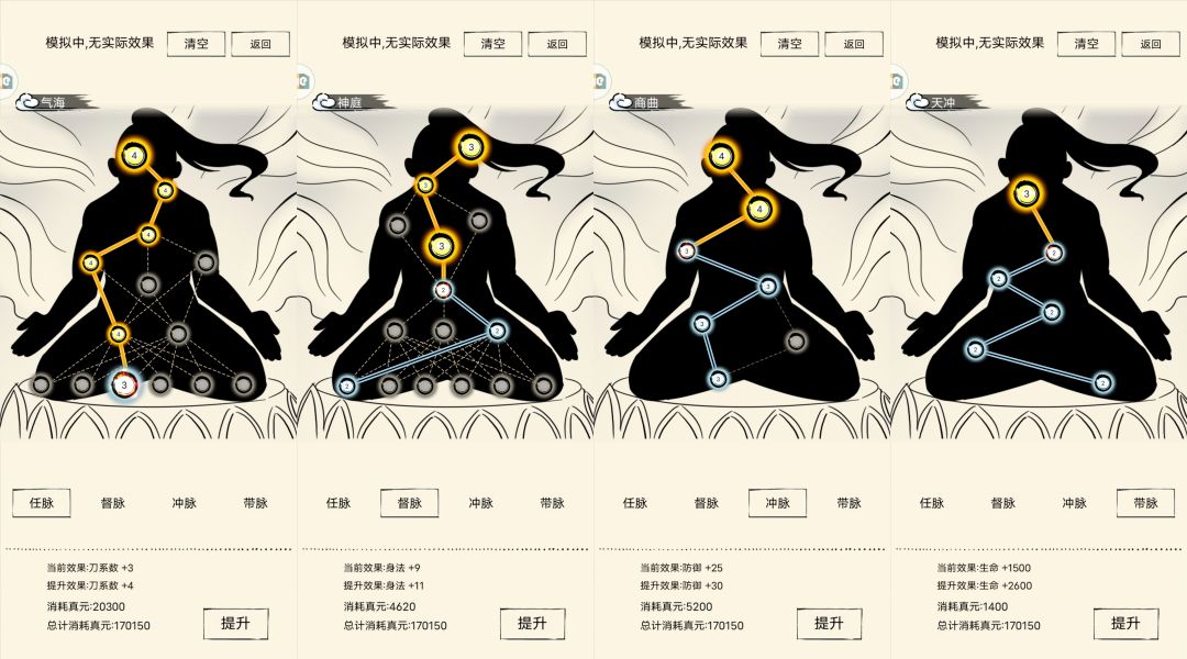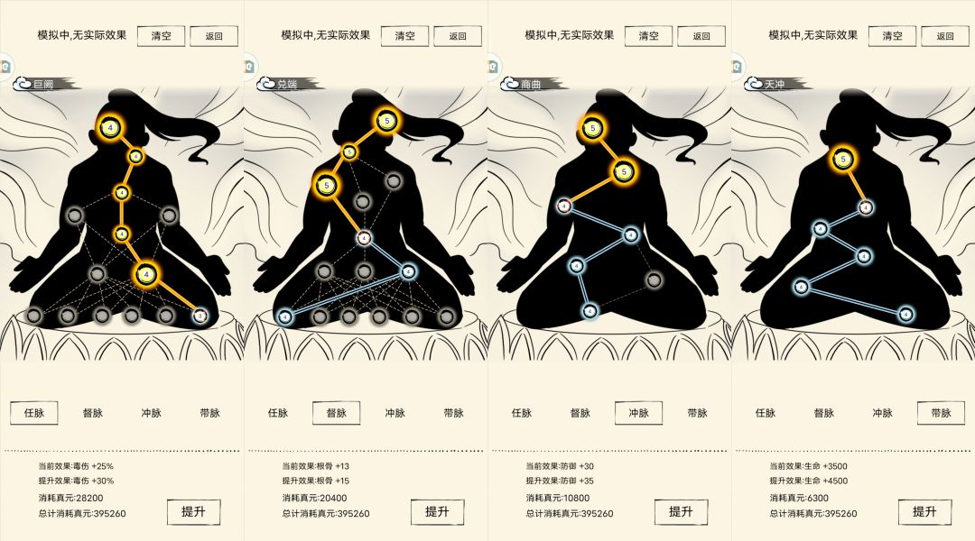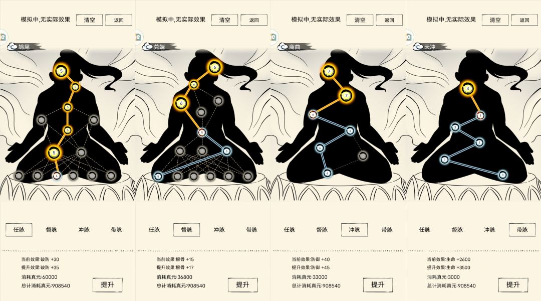 ☆注:四万真元是十分极限的快速轮回,你若是如此选择,那必定、必须是以快速发育为首要目标,你必须放弃一轮期间大部分的游戏体验,因此,带脉必须二级点满。