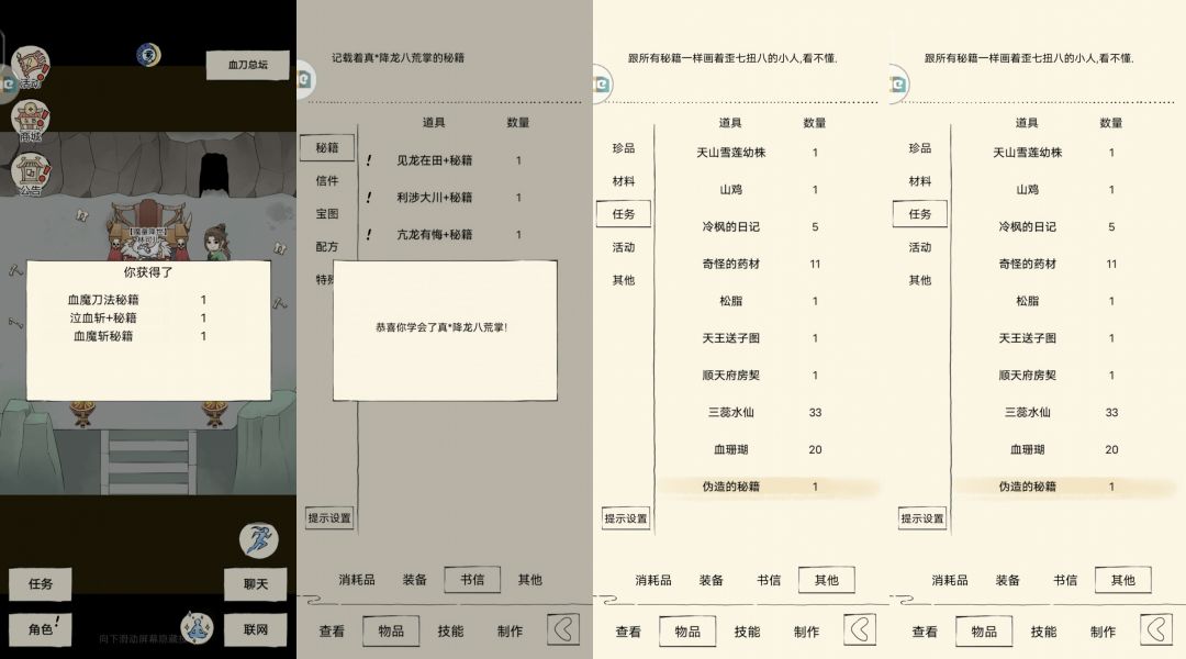 拿到血魔刀法后出师小日子,拿影忍三刀流。这个时候轮回,加入逍遥派,学习霸刀和十象,霸刀在血刀门也可以学,但十象只能逍遥派学。