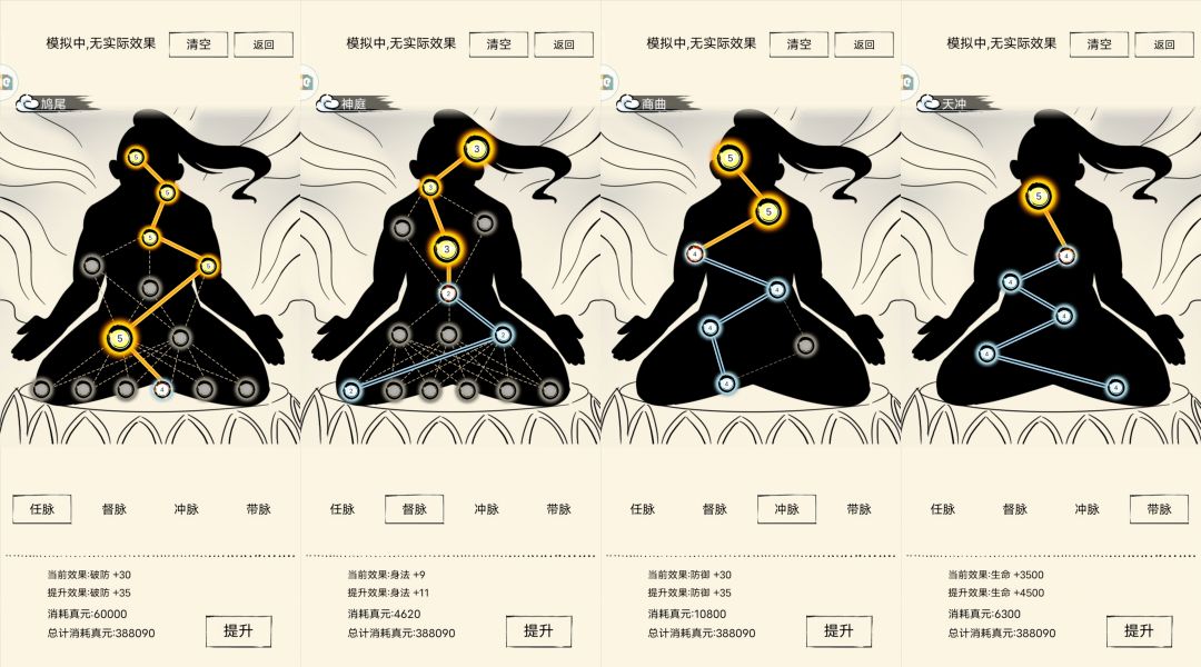 ☆注:四万真元是十分极限的快速轮回,你若是如此选择,那必定、必须是以快速发育为首要目标,你必须放弃一轮期间大部分的游戏体验,因此,带脉必须二级点满。