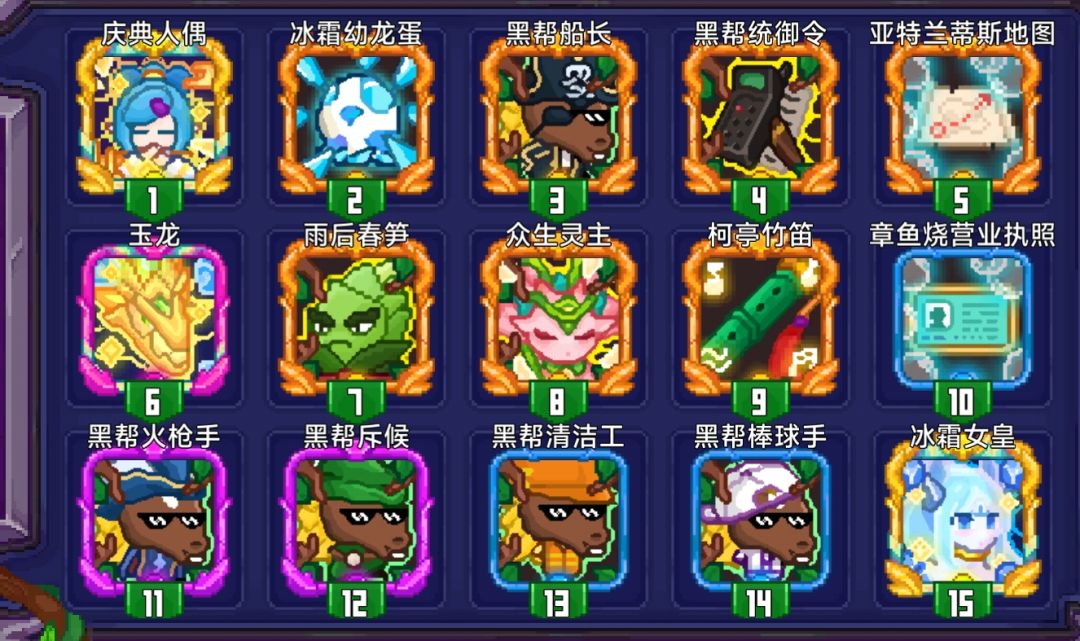 此处的卡组,冰龙1-2⭐,黑帮船长1-2⭐,黑帮统御令1-2⭐,乌鸦(图中的玉龙)1-2⭐,竹笋(或者机甲)0-1⭐,众生领主1-2⭐,笛子0-1⭐