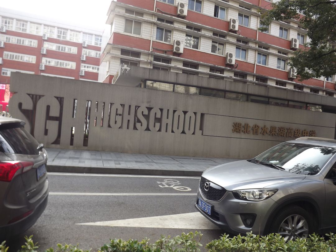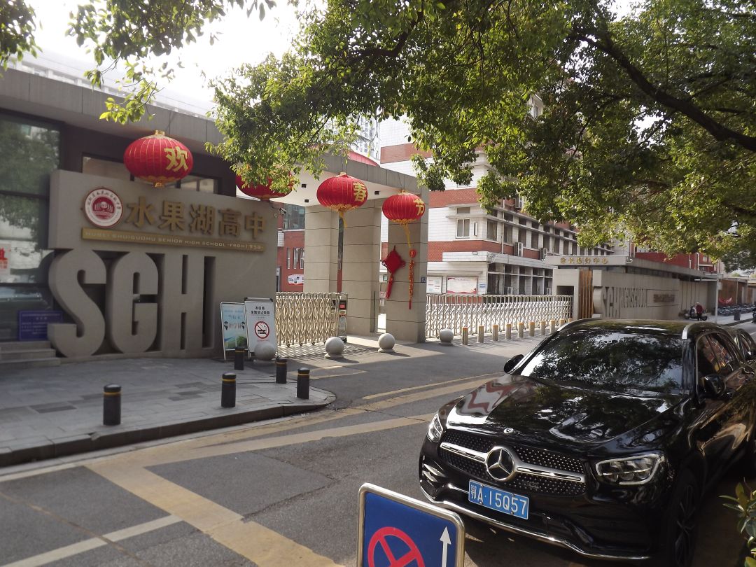 在门口的马路上停着许多的空汽车。怎么说呢?我到这里的时候这里也不晓得是在上课还是在放寒假没有看到什么学生倒是有比赛成年人估计是老师或者家长吧。