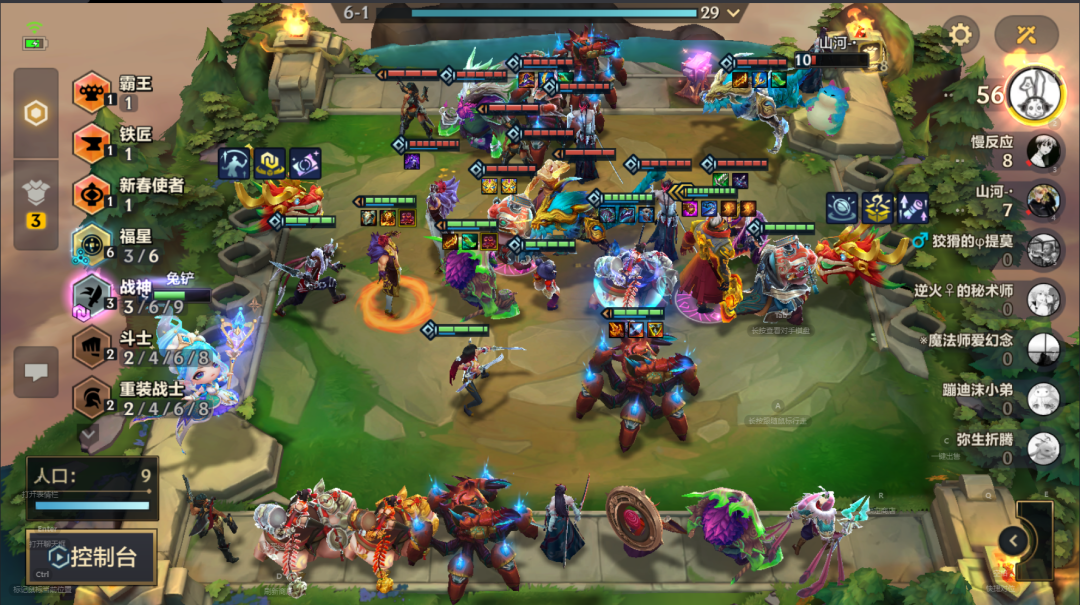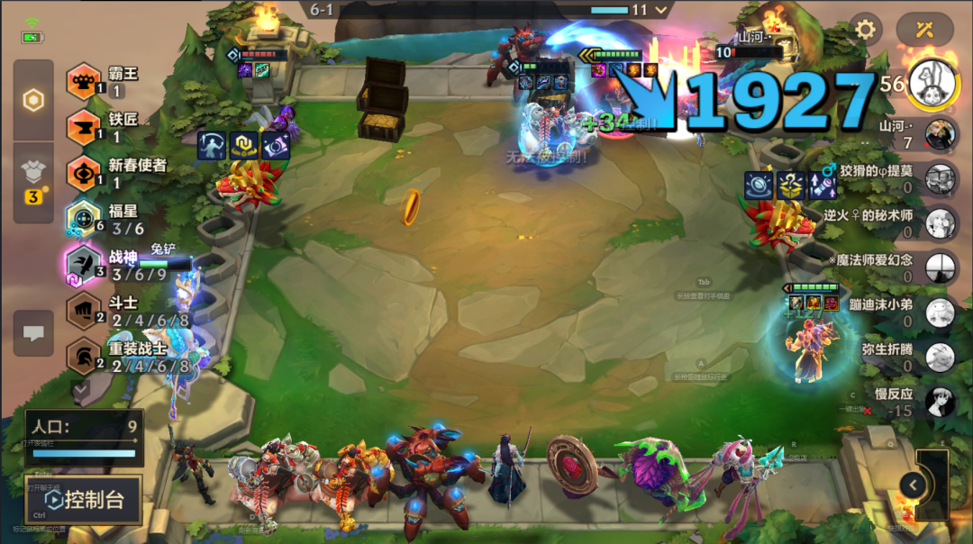标准阵容:6福星 3战神 2重装 2刺客