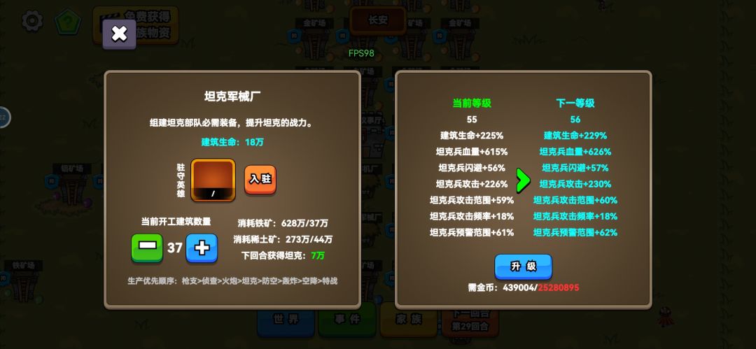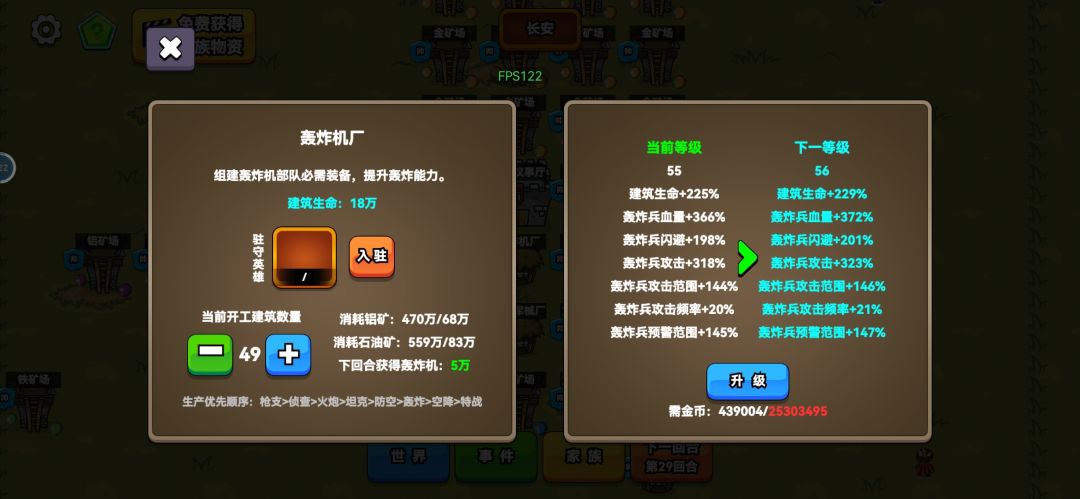 7个最高难度不看广告,29回合300多万全55级兵力被秒,预计攻下这个城池需要60级以上千万级兵力,要屯人口兵力将近10个回合,四个金矿城池90级了,前期10多个回合内快速拿下十几个城,越快越好,遇到首都攻不下就绕过,不要死磕首都,因为十来个回合就能秒掉你几十万30级兵力,只要保证全资源体系,全力爆金矿爆兵力,其他矿产均衡和人口生产搭配到极致,商业很鸡肋,人口根本不够用,50级大厅已经要1.5亿升级了,才不到千万总人口。所以最高难度想赢,要学会合理搭配看广告,或者运气爆表