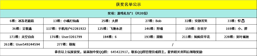 恭喜以下幸运的小骑士获得活动奖励,请中奖的小骑士添加获奖群:645422917,请加获奖群后,登记相关获奖信息,超过15个自然日未进群未登记视为放弃奖励~